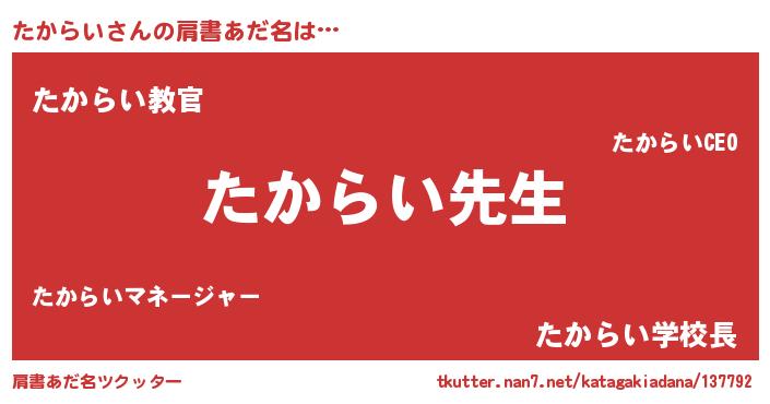 | ヘコむあだ名 | 『たからい(小並感)』『たかにゅー』 |