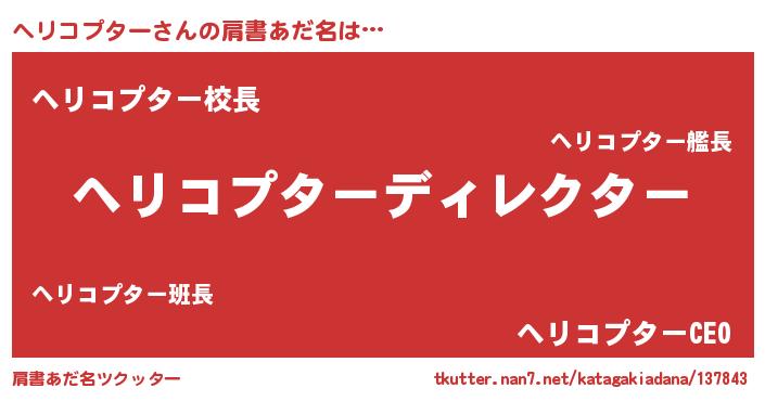 | 胡散臭い通販商品みたいなあだ名 | 『来世でも幸せになれる健康食品…その名も「ヘリコプター」』 |