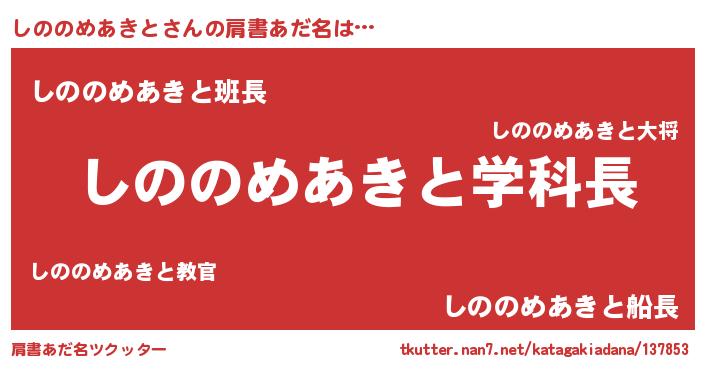 | 男性向けラノベタイトル風あだ名 | 『おまえをオタクにしてやるから、俺をしののめあきとにしてくれ! 』 |