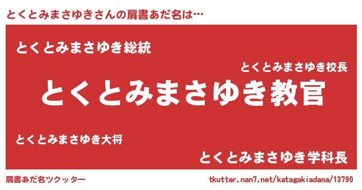 | 男性向けラノベタイトル風あだ名 | 『この素晴らしい世界にとくとみまさゆきを!』 |
