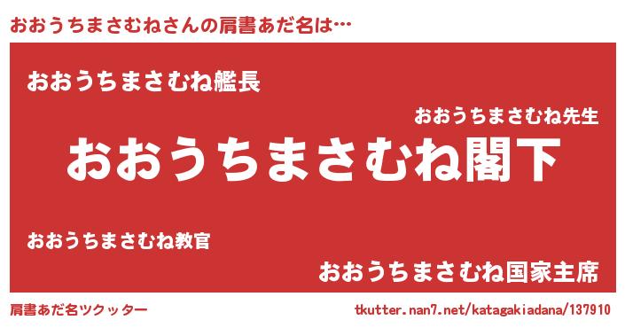 | 意味不明あだ名 | 『自称おおうちまさむね』 |