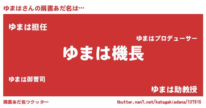 | 意味不明あだ名 | 『永久保存ゆまは』『ペロリンゆまは』 |