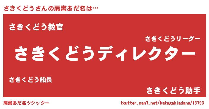 | 意味不明あだ名 | 『住所不定無職さきくどう(53歳)』 |