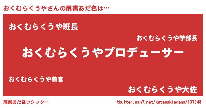 | 男性向けラノベタイトル風あだ名 | 『おくむらくうやに滅ぼされるだけの簡単なお仕事です』 |