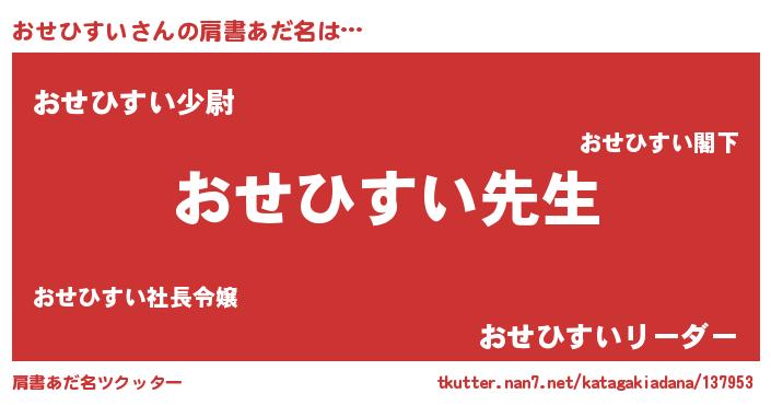 | 男性向けラノベタイトル風あだ名 | 『おせひすいという概念が存在しない退屈な世界 』 |
