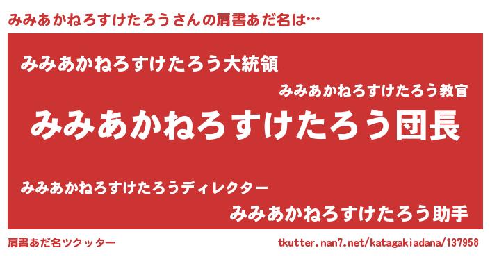 | 女子向けラノベタイトル風あだ名 | 『みみあかねろすけたろう様がみてる』 |