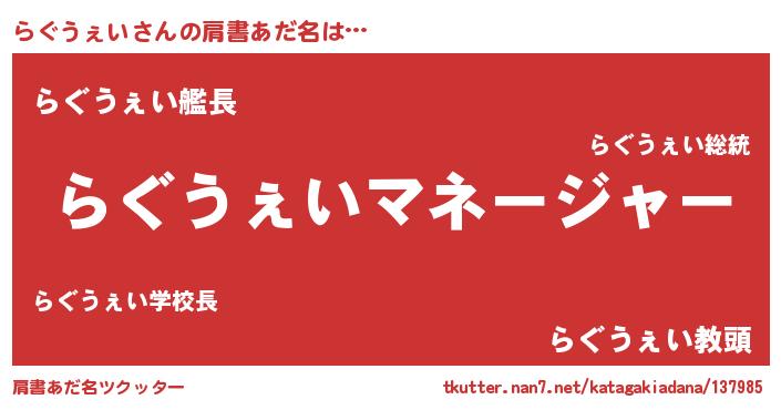 | ヘコむあだ名 | 『らぐうぇい(笑)』『らぐっぺ』 |
