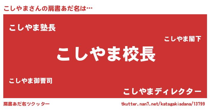 | 意味不明あだ名 | 『永久保存こしやま』『自称こしやま』 |