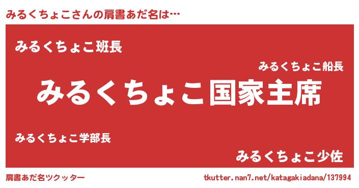| 欧米人風あだ名 | 『みるくちょこクリステル』 |