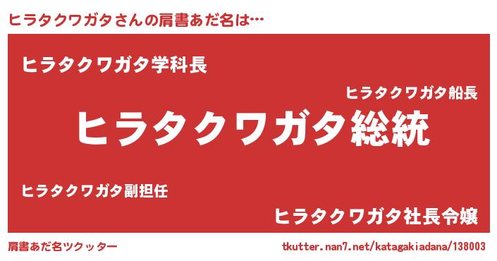 | ヘコむあだ名 | 『ヒラもー』『ヒラタクワガタ(震え声)』 |