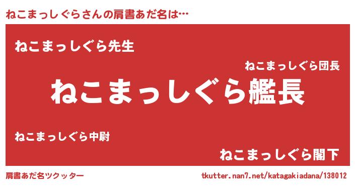 | ヘコむあだ名 | 『ねこまっしぐら(笑)』『ねこを』 |