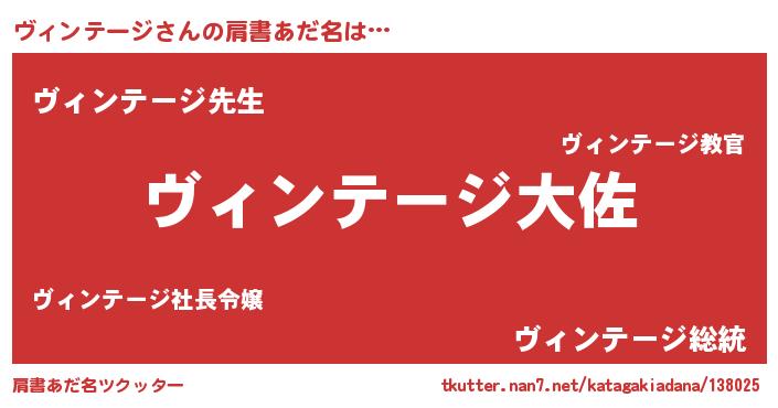 | 男性向けラノベタイトル風あだ名 | 『転生したらヴィンテージだった件』 |