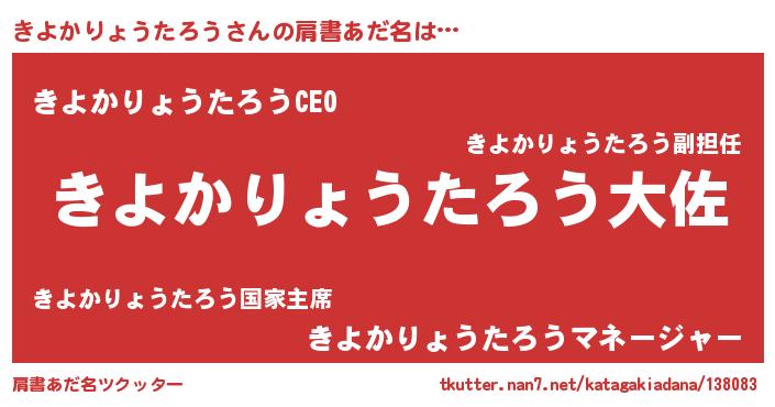 | ヒーロー風カッコイイあだ名 | 『スーパーキヨカリョウタロウ』 |