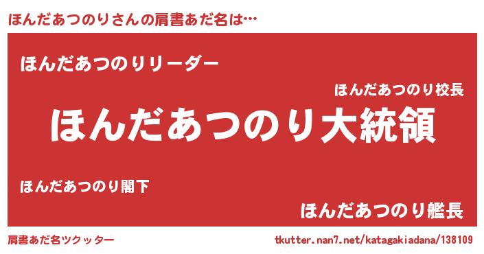 ほんだあつのりさんの肩書あだ名をツクッター!