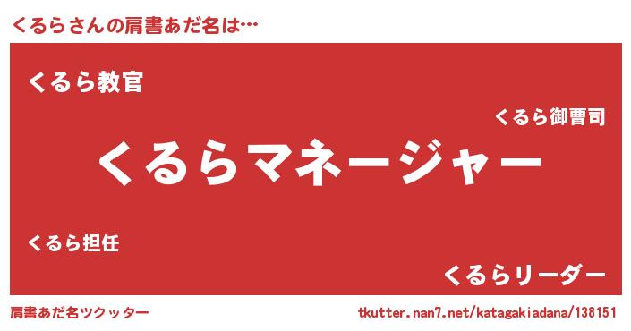 | 欧米人風あだ名 | 『アンジェラ・くるら』『ウサインくるら』 |