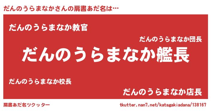 | 男性向けラノベタイトル風あだ名 | 『緋弾のダンノウラマナカ』 |