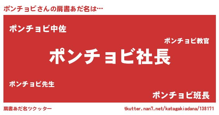 | ヒーロー風カッコイイあだ名 | 『スーパーポンチョビ』『黄金騎士ポン』 |