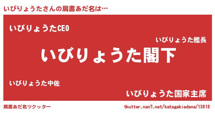| 意味不明あだ名 | 『自称いびりょうた』 |
