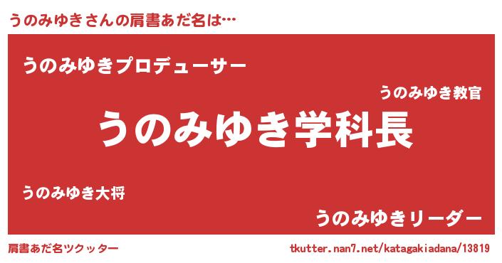 | ヘコむあだ名 | 『うのっちょ』『うのみゆき(遠い目)』 |