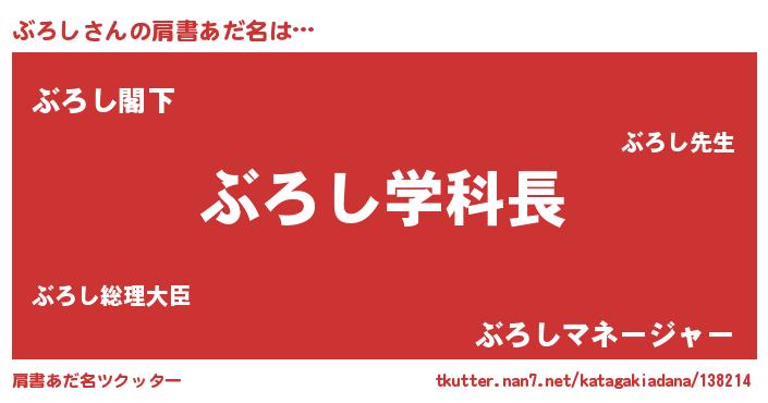 | 女子向けラノベタイトル風あだ名 | 『ぶろし夫妻のなれそめ』『闇のぶろし』 |