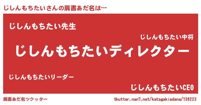 | 胡散臭い通販商品みたいなあだ名 | 『絶対に幸福をもたらす健康食品…その名も「じしんもちたい」』 |