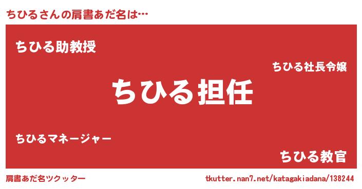 | 欧米人風あだ名 | 『ダルビッシュちひる』『ダニエルちひる』 |