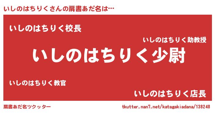 | 伝説のあだ名 | 『古文書に記された暗殺者いしのはちりく』 |