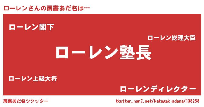 | ヒーロー風カッコイイあだ名 | 『魔戒騎士ロー』『究極戦士ローレン』 |