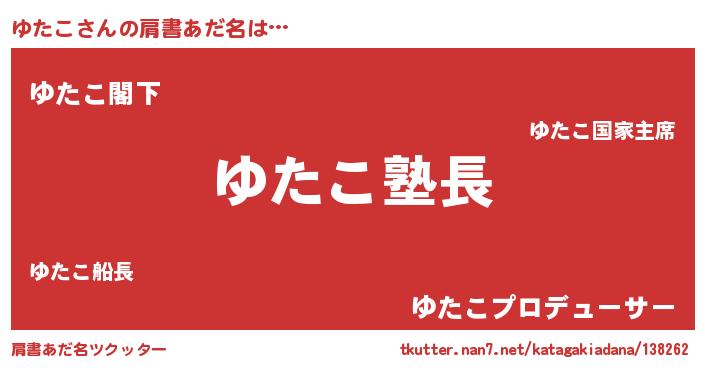 | 男性向けラノベタイトル風あだ名 | 『ゆたこの嫁は女の子じゃないと思った?』 |
