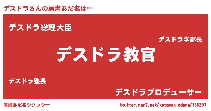 | 男性向けラノベタイトル風あだ名 | 『魔弾の王とデスドラ』 |