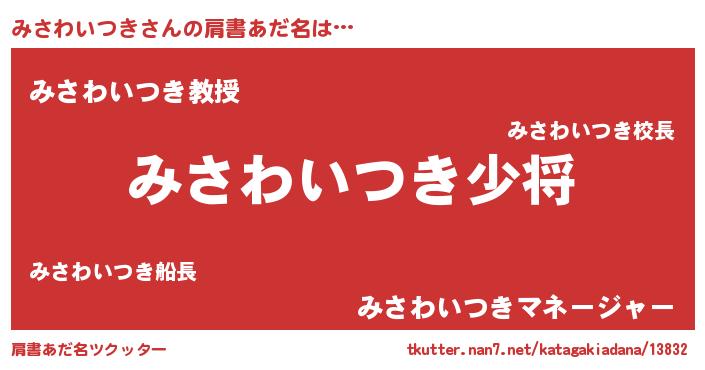 | ヘコむあだ名 | 『みさわいつき(苦笑)』『みさにー』 |