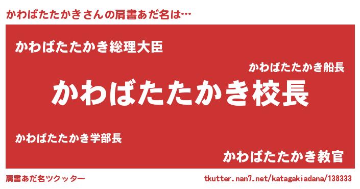 | 意味不明あだ名 | 『永久保存かわばたたかき』 |