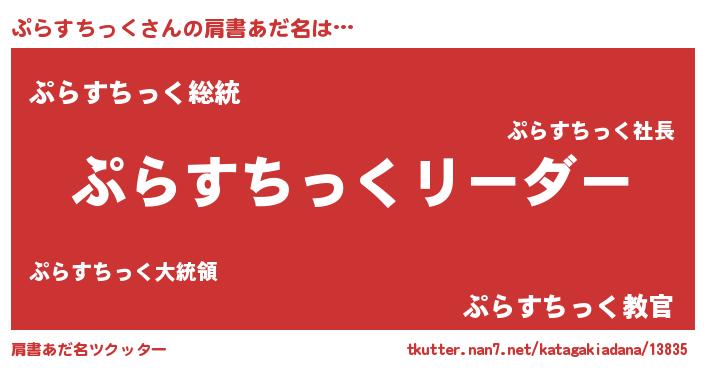 | 男性向けラノベタイトル風あだ名 | 『ぷらすちっくの嫁は女の子じゃないと思った?』 |