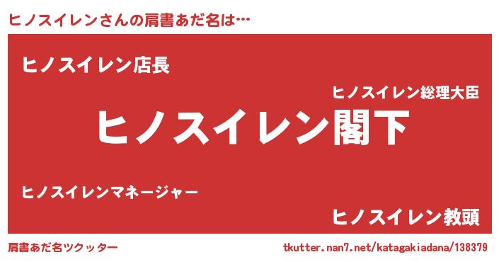 | 意味不明あだ名 | 『自称ヒノスイレン』 |
