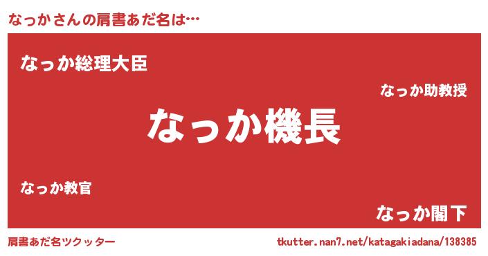 | 欧米人風あだ名 | 『なっか・ステッグマイヤー』 |