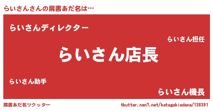 | ヘコむあだ名 | 『らいにゅー』『らいさん(爆)』 |