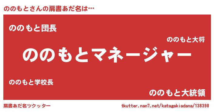 | 男性向けラノベタイトル風あだ名 | 『ののもとに滅ぼされるだけの簡単なお仕事です』 |