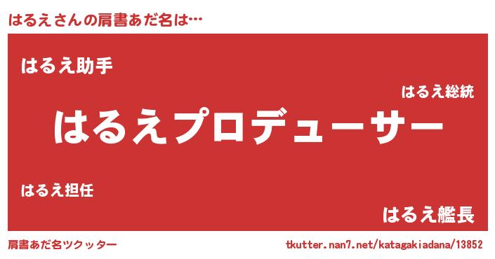 | 男性向けラノベタイトル風あだ名 | 『はたらくはるえさま!』『緋弾のハルエ』 |
