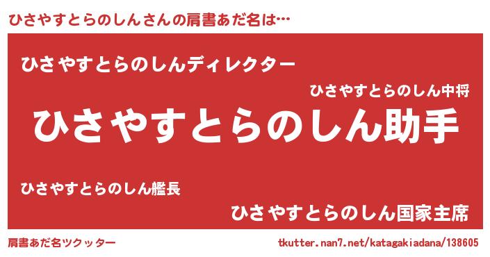 | 胡散臭い通販商品みたいなあだ名 | 『100人中100人が認めたイリジウム磁石…その名も「ひさやすとらのしん」』 |