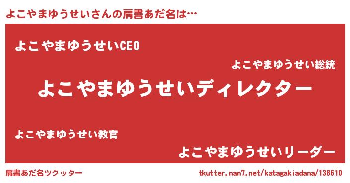 | 男性向けラノベタイトル風あだ名 | 『よこやまゆうせいに滅ぼされるだけの簡単なお仕事です』 |