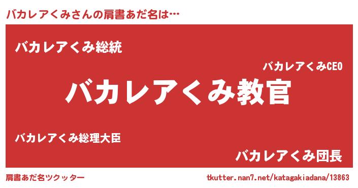 | 男性向けラノベタイトル風あだ名 | 『この素晴らしい世界にバカレアくみを!』 |