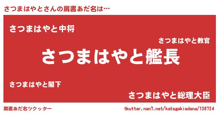 | 男性向けラノベタイトル風あだ名 | 『うちのさつまはやとが世界を掌握している!』 |