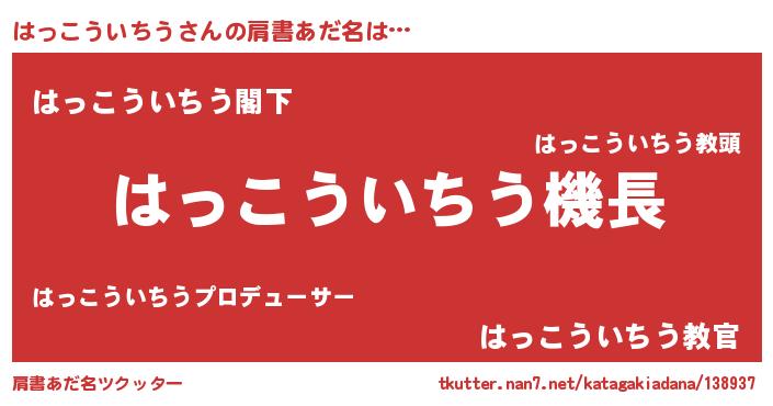 | 欧米人風あだ名 | 『はっこういちう・ステッグマイヤー』 |