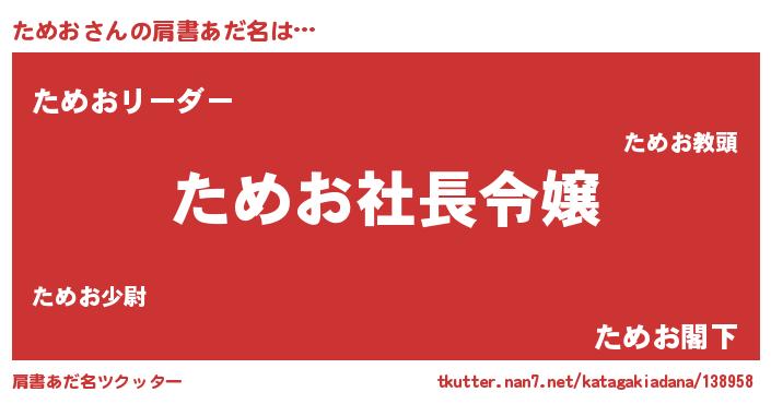 | 恥ずかしいあだ名 | 『プリティーためお』『タメリンリン』 |