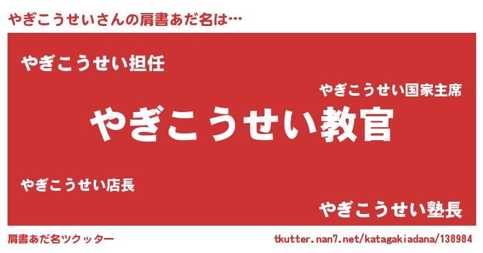 | 男性向けラノベタイトル風あだ名 | 『この素晴らしい世界にやぎこうせいを!』 |