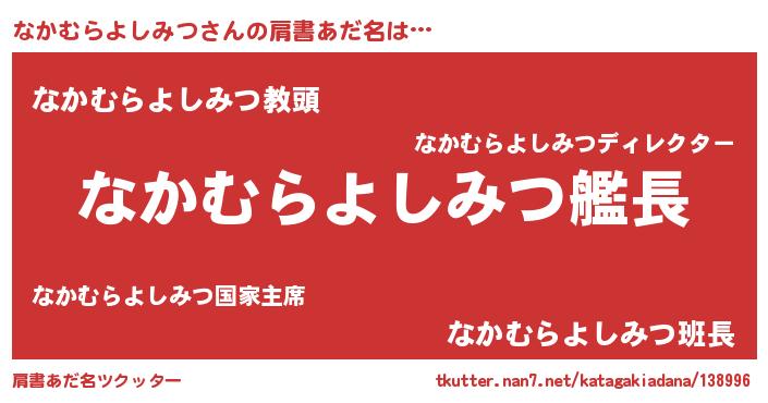 | 男性向けラノベタイトル風あだ名 | 『うちのなかむらよしみつが世界を掌握している!』 |