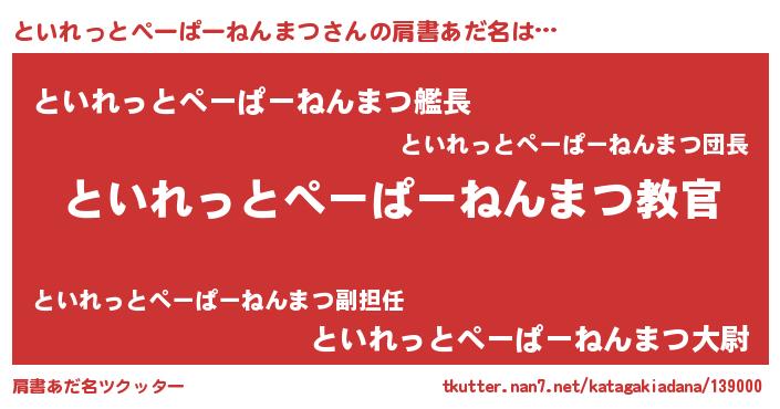 | 欧米人風あだ名 | 『ダレノガレといれっとぺーぱーねんまつ』 |