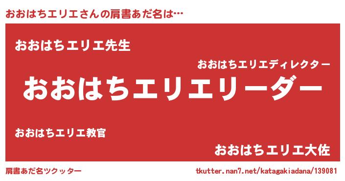 | 女子向けラノベタイトル風あだ名 | 『おおはちエリエ様がみてる』 |