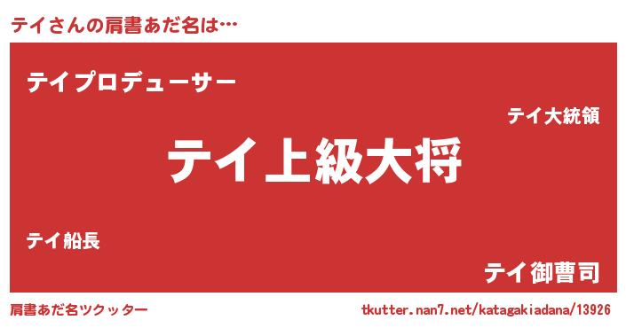 | ヒーロー風カッコイイあだ名 | 『スーパーテイ』『ウルトラテイマン』 |
