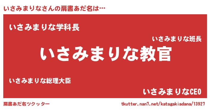 | ヒーロー風カッコイイあだ名 | 『仮面イサダー』『スーパーイサミマリナ』 |